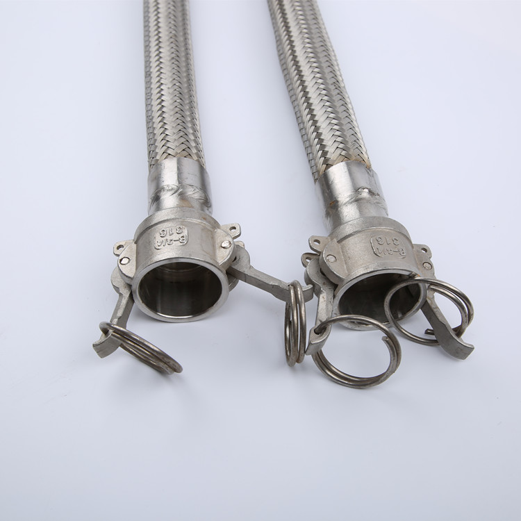 不锈钢金属软管的内管是螺旋形或环形薄壁不锈钢波纹管,其外层网套由不锈钢丝或钢带按一定的参数编织而成。金属软管两端接头或法兰是根据用户管道的接头或法兰相配的。